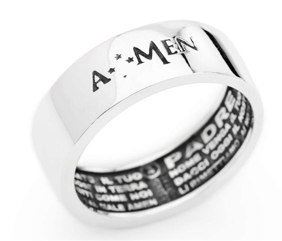 Anello Amen da uomo della collezione Padre Nostro. Anello In Argento 925 Della Misura 24. Il colore é rodio brunito.