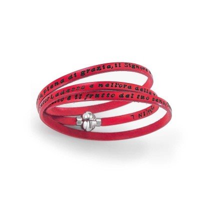 BRACCIALE IN PELLE ROSSO CORALLO. AVE MARIA. MISURA S 54 CM. CHIUSURA IN ACCIAIO A CALAMITA.