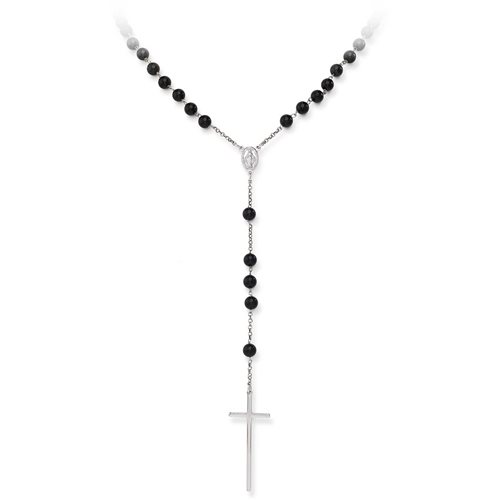 Collana rosario in argento 925% Lunghezza 66 cm lunghezza catena e 14cm.
