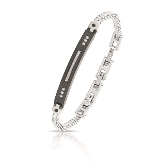 BRACCIALE IN ACCIAIO CON CENTRALE NERO E ZIRCONI BIANCHI NIKELE FREE