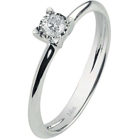 Anello Da Donna Di Bliss Della Collezione Norma. Anello Solitario In Oro Bianco Da 18 Carati E Brillanti. Modello 4 Punte, Ovvero Con Incastonatura A 4 Griffe. Diamante Di Carati 0,08 colore GH
