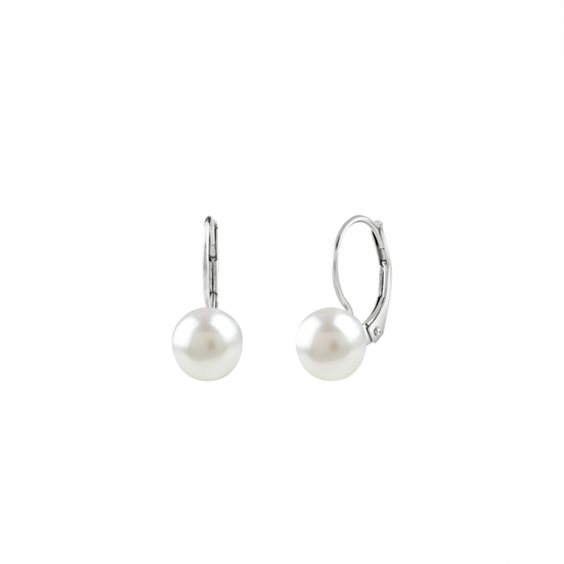 ORECCHINI A MONACHELLA IN ORO BIANCO CON PERLA FRESHWATER 7.5-8 MM QUALITY AAA