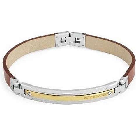 BRACCIALE DA UOMO IN PELLE CON TARGA IN ACCIAIO BICOLORE