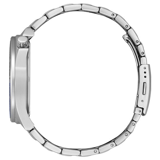Orologio Citizen Uomo Caratteristiche dell'orologio: Movimento Eco Drive a carica luce Funzione solo tempo Fondello a vite Impermeabilità fino a 10 ATM Cassa dal diametro di 43 mm realizzata in acciaio inossidabile ghiera in alluminio bicolore Cinturino in acciaio inossidabile Quadrante analogico di colore blu