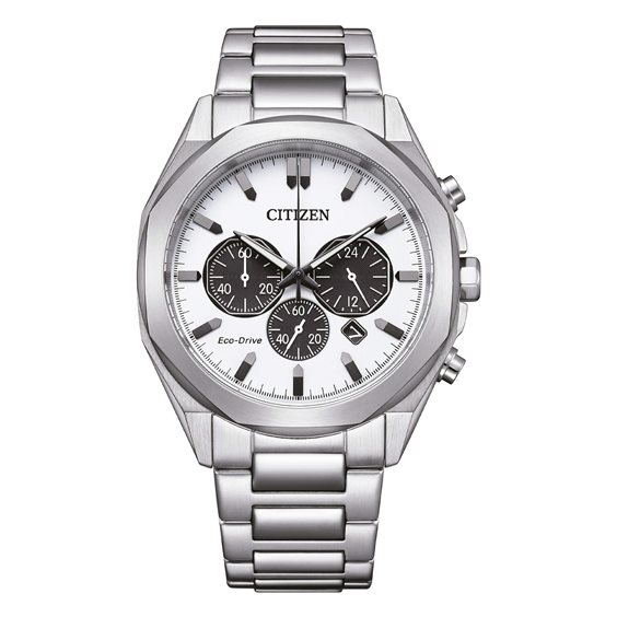 Orologio Citizen Uomo Caratteristiche dell'orologio: Movimento Eco Drive Funzione Cronografo Cassa in acciaio da 41 mm Cinturino in acciaio Fondello a vite Vetro minerale Quadrante colore bianco Impermeabilità fino a 10 atm Peso 140,00 gr