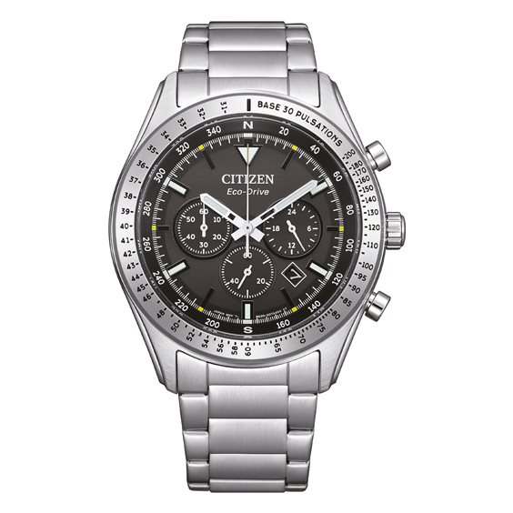 Orologio Citizen Uomo Caratteristiche dell'orologio: Movimento Eco Drive Funzione Cronografo Cassa in acciaio da 43 mm Cinturino in acciaio Fondello a vite Vetro minerale Quadrante colore nero Impermeabilità fino a 10 atm Peso 156,00 gr