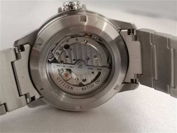 Orologio Solo Tempo Citizen Meccanico Automatico. Cassa in Super Titanio Duratect (finitura in platino) satinata con particolari lucidi, fondo (vista movimento) lunetta e corona lucidi. Movimento meccanico automatico con riserva di carica 40 ore . Quadrante blu, indici e lancette acciaio, oblò vista bilancere. Vetro zaffiro. Bracciale regolabile in Super Titanio satinato e lucido, chiusura deployante con pulsanti. Impermeabile 10 bar (10 atm.). Scatola e garanzia originali.