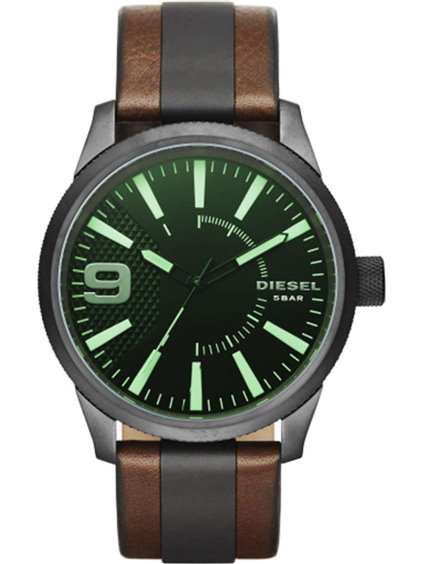 Orologio uomo Diesel cassa in acciaio quadrante verde cinturino pelle marrone e nero cassa da 47 mm al quarzo display analogico