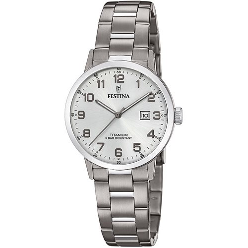Orologio Festina da donna della collezione Titanium. Cassa e cinturino in titanio ipoallergenico. Lancetta fluorescente.
