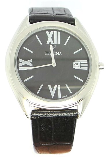 OROLOGIO UOMO/UNISEX , MOVIMENTO AL QUARZO SOLO TEMPO. CASSA IN ACCIAIO LUCIDO, LUNETTA SATINATA, QUADRANTE NERO CON NUMERI ROMANI ALLE ORE 12, 3, 6, 9 E INDICI. DIAMETRO CASSA MM 36. FONDELLO SERRATO A PRESSIONE, IMPERMEABILE FINO A TRE ATMOSFERE. CINTURINO PELLE NERA STAMPATA MM ANSA 20.
