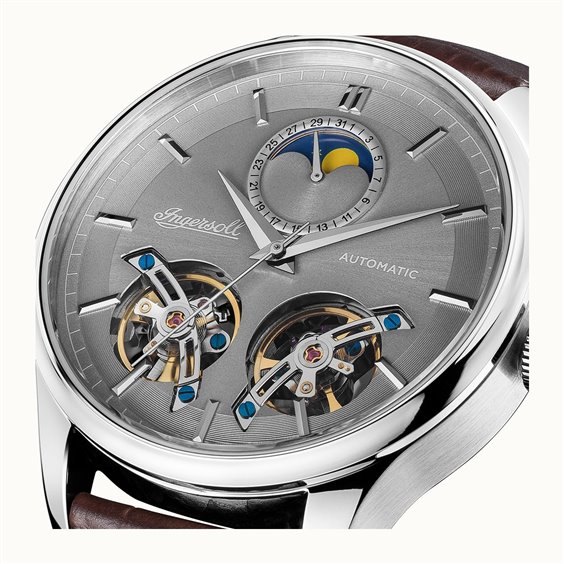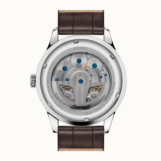 OROLOGIO INGERSOLL ,COLLEZIONE THE CHORD. AUTOMATICO CALIBRO SHANGHAI JHLS15. FUNZIONI : FASE LUNARE VETRO MINERALE , DOPPIO BILANCIERE E FONDELLO A VISTA. GARANZIA A VITA SUL FUNZIONAMENTO DEL MOVIMENTO
