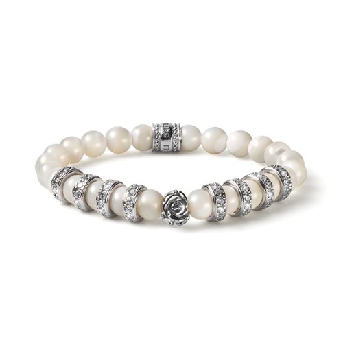 BRACCIALE ELASTICO IN ARGENTO CON MADREPERLE E CRISTALLI