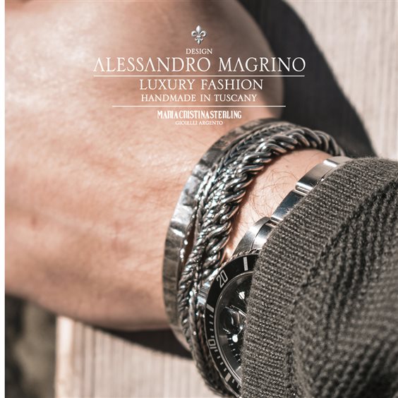 Art. G3506 • Bracciale Uomo cm. 19+3 tre catene in Argento brunito 925‰ • Chiusura Moschettone • Interamente realizzato a mano • Made in Italy • Disegnato per Maria Cristina Sterling da Alessandro Magrino