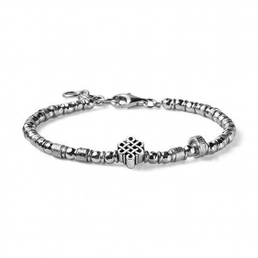 Bracciale uomo MARIA CRISTINA STERLING G3563 Collezione Eternity in argento 925 interamente realizzato a mano e disegnato da Alessandro Magrino. Chiusura a moschettone. Lunghezza cm 19 - 22. “Love is for those who have courage to love.” Esistono due anime, esistono due cuori ed un solo grande Amore. Un legame così forte che non potrà sciogliersi mai. Dall’antichità un simbolo rinasce sotto forma di gioiello: è un nodo ed il suo nome è Eternity. Donare ed indossare Eternity è la promessa d’amore più forte che si possa fare a chi si ama. Un gioiello che lega e che protegge il vostro sentimento, un dono speciale per augurare ai vostri cuori di non separarsi mai e di non tremare di fronte agli ostacoli.