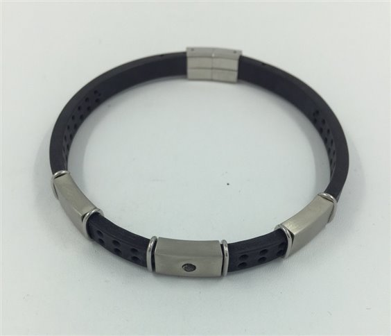 BRACCIALE IN CAUCCIU' CON INSERTI IN ACCIAIO ACCORCIABILE FINO A 19 CM