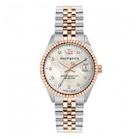OROLOGIO DA DONNA IN ACCIAIO CON FINITURE IN ORO ROSA, VETRO IN ZAFFIRO E QUADRANTE IN MADREPERLA CON DIAMANTI, MOVIMENTOAL QUARZO RONDA 705