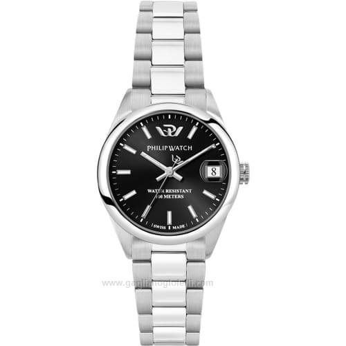 OROLOGIO PW IN ACCIAIO DA DONNA MOVIMENTO AL QUARZO,VETRO ZAFFIRO,FONDELLO E CORONA A VITE,QUADRANTE NERO, 10 ATM