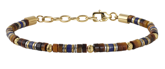 BRACCIALE IN ACCIAIO E PIETRE NATURALI - MIS. CM 19+3 EST