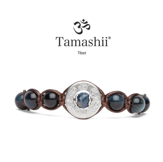 Zaffiro naturale e Occhio di Falco. Lo Zaffiro, il cui nome deriva dal sanscrito "sani" (Saturno), è da sempre associato al cielo, agli angeli, alla magia, alla fiducia e all'amicizia. Questa gemma stimola la determinazione, aiutando l'individuo a realizzare i propri obiettivi. Accresce il desiderio di conoscenza e saggezza, ispirando fede e amore per la verità. La pietra Occhio di Falco è associata alla concentrazione, alla chiarezza mentale e ad una visione più profonda delle proprie esperienze, sia positive che negative. È una pietra calmante, aiuta a ridurre lo stress e ad implementare la calma. Dona l’abilità di cogliere considerare aspetti che altrimenti si sarebbero notati con difficoltà. Fornisce una finestra introspettiva sulle proprie questioni emotive e sfide personali. Si pensa che l’Occhio di Falco sia una pietra di protezione, pertanto spesso usata dai viaggiatori. Bracciale originale tibetano Tamashii® della linea Ruota della Preghiera Precious edition realizzato con pietra preziosa centrale Zaffiro naturale, lateralmente 6 pietre sferiche di Occhio di Falco (visibile nella seconda foto rappresentativa), cordoncino marrone. Ruota della Preghiera piatta in Argento 925 rodiato con inciso il mantra "Om Mani Padme Hūm" del Buddha della Compassione Cenresig. Diametro pietre: 8 mm Taglia unica: il bracciale è predisposto per adattarsi a qualsiasi polso grazie alle asole già presenti (dove si inserisce la chiusura a bottone), una volta scelta la misura si può tagliere il cordoncino. Ogni prodotto è confezionato all'interno del packaging originale Tamashii® e corredato dalla Dichiarazione di Autenticità. Importante da ricordare: trattandosi di pietre naturali, eventuali variazioni di tonalità, struttura o colore sono da considerarsi assolutamente normali. Queste caratteristiche rappresentano una garanzia di autenticità e rendono ogni gioiello Tamashii® unico e irripetibile.