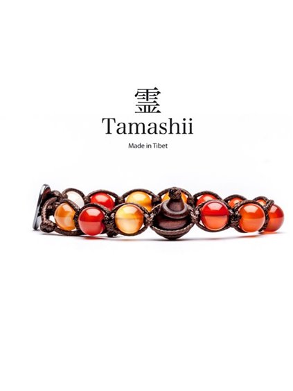 Bracciale originale tibetano Tamashii realizzato con pietre naturali CORNIOLA. Unisex e taglia unica (il bracciale è predisposto per adattarsi a qualsiasi diametro di polso).
