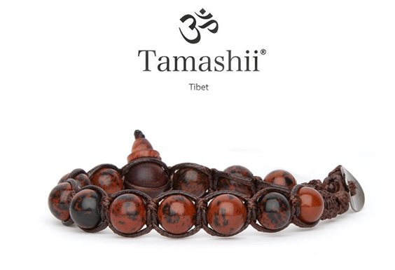Bracciale Tamashii Ossidiana. Cordoncino marrone in cotone cerato. Taglia unica ma predisposto per adattarsi ad ogni polso. Le pietre sono naturali perciò la foto è indicativa come tonalità, ma ogni bracciale è diverso. L'Ossidiana è una delle pietre da culto più antiche, deve il suo nome a Obsius, il romano che la scoprì nel territorio dell'odierna Etiopia. Solitamente si presenta di colore nero, questa variante Mogano aiuta, chi lo indossa, a ristabilire la propria integrità facendogli vedere i lati oscuri della propria personalità e spingendolo a trasformarli. In questo modo l'individuo diventa il "guerriero senza macchia" spiritualmente libero ed invulnerabile. MADE IN TIBET