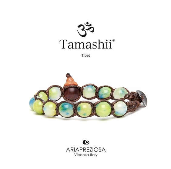 Questa colorazione presenta sfumature di colore verde e azzurro. Linea Jade Blooms - Giada Immagina un giardino all’inizio della propria fioritura, dove i boccioli si aprono lentamente alla luce del sole, sfilandosi dal rigido cappotto invernale e svelando così morbidi petali, inebrianti profumi e delicate sfumature. È questa l’atmosfera che ispira la nuova linea di bracciali Tamashii una danza di colori pastello, come i prati appena risvegliati dalla rugiada, dove ogni pietra è un germoglio di speranza e vitalità. Indossare questi bracciali significa portare con sé un frammento di primavera, il primo atto nella commedia dell’esistenza; un invito a rinascere e riconnettersi con l’energia della natura. Le loro nuance leggere e vibranti sono preziose scintille di resilienza, prese in prestito alla magnificenza del creato, lo sprono a rialzarsi anche dopo il più rigido inverno del cuore. Mentre il vento tiepido accarezza le prime foglie e i ruscelli risuonano di limpide melodie, questi bracciali si trasformano in simboli di forza interiore, di gioia di vivere e di capacità di superare ogni avversità. La nuova collezione di bracciali TAMASHII è un messaggio di rinascita, un invito a respirare i colori dei giorni futuri, ad aprirsi alla luce della speranza e a riscoprire, ogni volta, la propria primavera interiore ricordandosi che ogni stagione ha il proprio senso e un posto fondamentale nel cuore di tutti i suoi attori. Bracciale unisex originale Tibetano Tamashii® realizzato con pietra naturale di Giada e cordoncino marrone. Misura pietre: 8 mm Taglia unica: il bracciale è predisposto per adattarsi a qualsiasi polso grazie alle asole già presenti (dove verrà infilato il bottone), una volta scelta la misura si può tagliere il cordoncino.