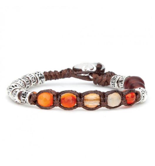 Braccialetto realizzato con cordino marrone, passanti in argento 925% con inciso il mantra "Om Mani Padme Hūm" e sfere in corniola sfaccettata dal diametro di 6 mm. Misura estremamente regolabile. I bracciali Tamashii sono bracciali originali tibetani chiamati anche Shamballa realizzati in pietre naturali. Ogni bracciale donna e bracciale uomo ha come elemento "La Calabash" una zucca piena di semi fatta in legno come simbolo della continuità della vita e della felicità