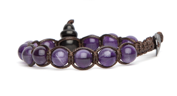 Bracciale unisex originale Tibetano Tamashii® realizzato con pietra naturale Ametista, cordoncino marrone e Calabash in Shungite. Misura pietre: 8 mm Taglia unica: il bracciale è predisposto per adattarsi a qualsiasi polso grazie alle asole già presenti (dove verrà infilato il bottone), una volta scelta la misura si può tagliere il cordoncino.
