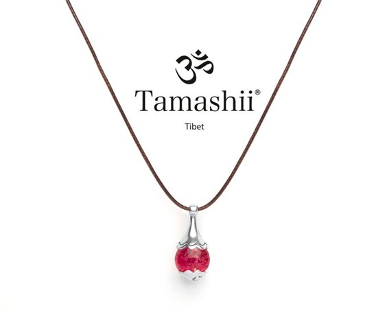 Collana composta da ciondolo a goccia in Argento 925/°°° rodiato con pietra naturale di Agata amarena e cordoncino doppio marrone. Sono presenti le asole finali con bottone per chiudere la collana alla lunghezza desiderata. Dimensione pietra: 10 mm Lunghezza ciondolo: 2 cm Lunghezza collana cm 50 regolabile La collezione Tamashii® Ear-Drops rende omaggio a Tārā; la Grande Dea Madre protettrice del Tibet ed il design di questi orecchini è ispirato proprio alla sua nascita. Un giorno Avalokitesvara (Buddha della grande compassione) non riusciva a salvare come avrebbe voluto gli esseri senzienti e preso da un terribile sconforto pianse. Dalla goccia della sua lacrima nacque Tārā che divenne l’essenza della compassione votata ad eliminare la sofferenza di tutti gli esseri senzienti ed a condurli all'illuminazione. Essa personifica l’immediatezza dell’intervento e simboleggia un particolare aspetto della compassione, quello attivo ed energico per il superamento delle difficoltà. Il suo corpo verde smeraldo è radioso, limpido e traslucido, non è qualcosa di solido e concreto, sembra oscillare tra realtà e non-realtà. Il colore verde è simbolo dell'elemento aria (o vento) e quindi del movimento; perciò, dal punto di vista spirituale, indica l'attività illuminata, la compassione attiva ed operosa: Tārā agisce, per il bene di coloro che la pregano, senza indugio e con la rapidità del vento. L’Agata amarena (black cherry) è una rara e bellissima pietra con tonalità dal rosso/viola più o meno scuro, le pietre sono spesso accompagnate da venature verde più o meno intense. Per le sue caratteristiche policromatiche questo bracciale potrebbe essere equiparato ai viola o ai verde in base alla predominanza di un colore o l’altro. *Trattandosi di pietre naturali ognuna è differente dall'altra per tanto, ci possono essere delle variazioni di tonalità pur essendo la stessa pietra.