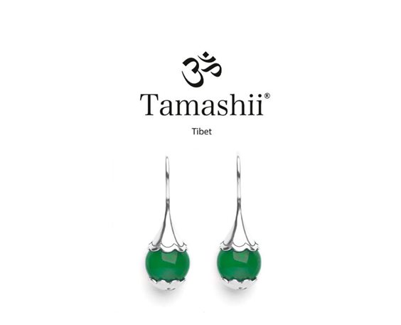 Coppia di orecchini a goccia originali Tamashii® in Argento 925/°°° rodiato con pietre naturali di Agata verde. La collezione è composta da orecchini a forma di goccia che amiamo definire “gocce di compassione”. Dimensione pietra: 10 mm Lunghezza singolo orecchino: 3 cm La collezione Tamashii® Ear-Drops rende omaggio a Tārā; la Grande Dea Madre protettrice del Tibet ed il design di questi orecchini è ispirato proprio alla sua nascita. Un giorno Avalokitesvara (Buddha della grande compassione) non riusciva a salvare come avrebbe voluto gli esseri senzienti e preso da un terribile sconforto pianse. Dalla goccia della sua lacrima nacque Tārā che divenne l’essenza della compassione votata ad eliminare la sofferenza di tutti gli esseri senzienti ed a condurli all'illuminazione. Essa personifica l’immediatezza dell’intervento e simboleggia un particolare aspetto della compassione, quello attivo ed energico per il superamento delle difficoltà. Il suo corpo verde smeraldo è radioso, limpido e traslucido, non è qualcosa di solido e concreto, sembra oscillare tra realtà e non-realtà. Il colore verde è simbolo dell'elemento aria (o vento) e quindi del movimento; perciò, dal punto di vista spirituale, indica l'attività illuminata, la compassione attiva ed operosa: Tārā agisce, per il bene di coloro che la pregano, senza indugio e con la rapidità del vento. L'Agata è una pietra presente in natura in vari colori, in questo caso nella variante verde identifica il colore della natura, degli alberi e delle piante. Riassume le qualità di equilibrio e di armonia, ma anche di vigore giovanile e di azione. L'Agata verde trasforma la gelosia in saggezza di realizzazione.