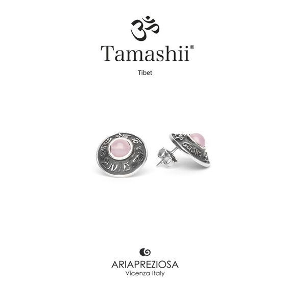 Gli antichi cinesi della dinastia degli Han orientali, nel loro primo dizionario, definirono la giada (yu) come “la pietra più bella” questa pietra infonde molte virtù, tra cui la benevolenza, la fedeltà, l’educazione e la sincerità. Se indossata nella sua variante rosa favorisce la connessione con il mondo spirituale e allevia i dolori della mente e dello spirito. Il design si ispira ai copricapi dei monaci per la precisione al copricapo RIG ZVA, indossato dagli allievi che hanno superato gli esami del corso del Sgrub Grva, cioè riservato agli Grub Bla Ma e agli abati (Gdan Sa). In Tibet il Lamaismo si divide in diverse scuole, tra le più caratteristiche e antiche c’è quella dei rNin ma pa, “gli antichi”, la seconda scuola. I loro monaci indossano diversi copricapi, ognuno dei quali identifica il ruolo gerarchico e spirituale all’interno della stessa scuola. Coppia di orecchini a lobo originali Tibetani Tamashii® in Argneto 925 anticato con pietre naturali di Giada rosa. Tutti gli orecchini sono coordinati ai bracciali, da cui ereditano i principi fondamentali quali design tradizionale e pietre naturali. La loro forma richiama il copricapo RIG ZVA, nella circonferenza esterna a vista in rilievo troviamo il Mantra internamente invece il logo Tamashii®. Pietra della misura di 6 mm, chiusura in Argento 925 con farfallina. Diametro singolo orecchino: 1,7 cm